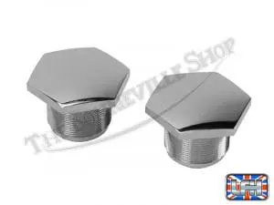 Triumph 500 650 Pre-Unit Chrome Fork Top Nut Set (2) 26TPI PN# 97-0432