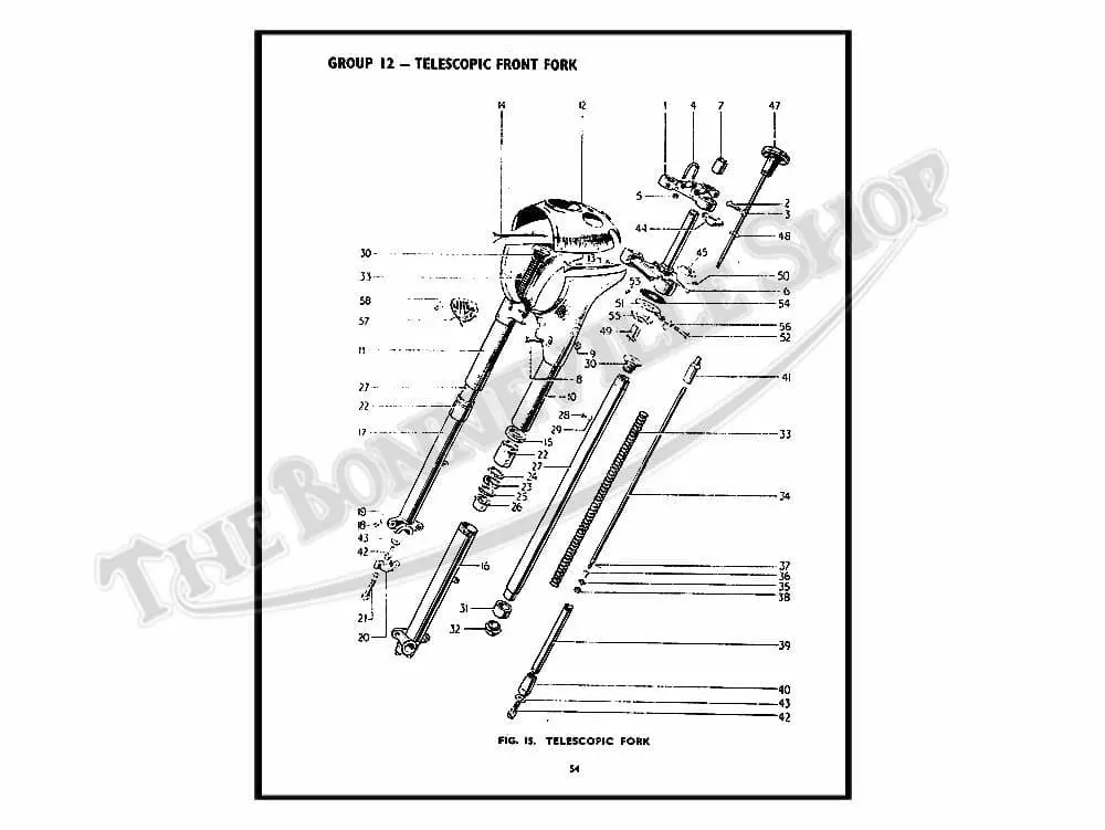 Full size 8.5″ x 11″ 1957 SDT frame 650 pre-unit Triumph parts book copy. Take the frustration out of parts ordering by buying one of these for your appropriate year model.