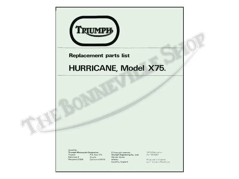1973 Triumph X75 Vetter Hurricane Parts Book PN# 99-0967