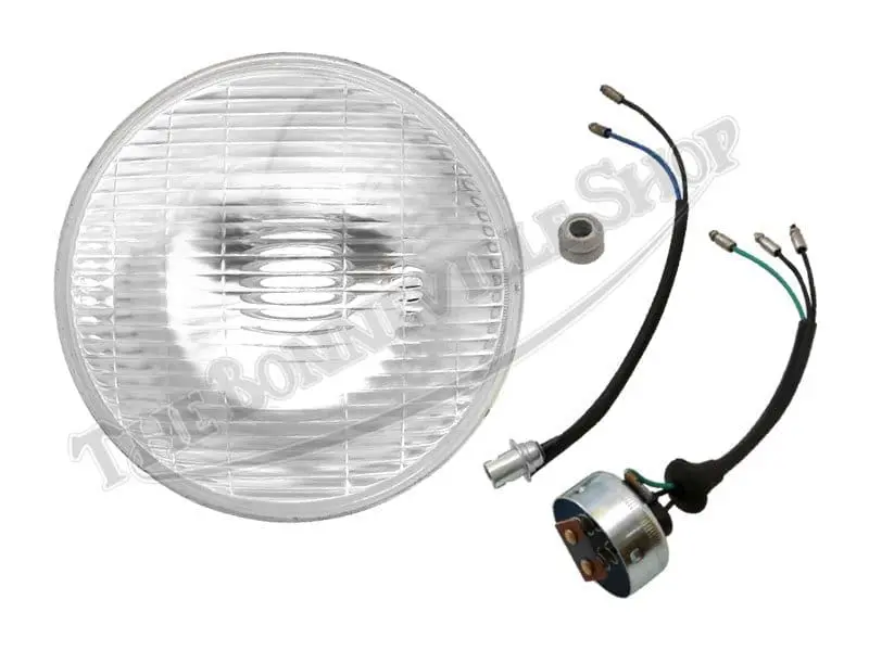 BRAND NEW REPLICA LUCAS 7″ HEAD LIGHT REFLECTOR UNIT WITH CORRECT BPF (British Pre-Focus) TYPE BULB HOLDER WITH PILOT APERTURE AND BULB HOLDER FOR ALL LUCAS APPLICATIONS. BULBS NOT INCLUDED.