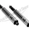 Beautiful pair of Girling type shocks for BSA twins. 13.4″ 110lb spring rate, exposed coil suspension units as originally fitted to 1968-72 BSA twins can also be retrofitted to earlier BSAs that used the shrouded shocks. These can also be fitted to numerous Triumph and Norton motorcycles of the 1960s-1980’s if you’d like a taller than stock ride. Sold as pairs.