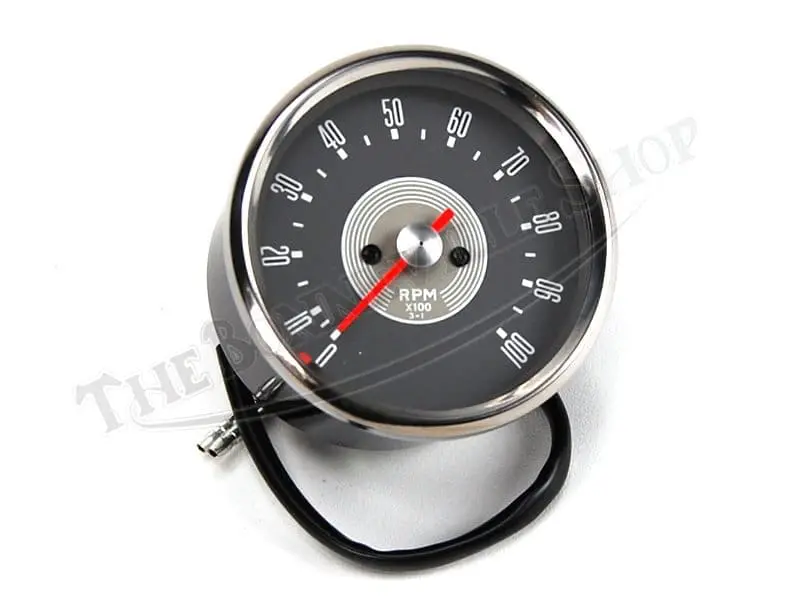 This tachometer is a reproduction of the original RSM 3003/01 3:1 drive ratio grey-faced instrument.