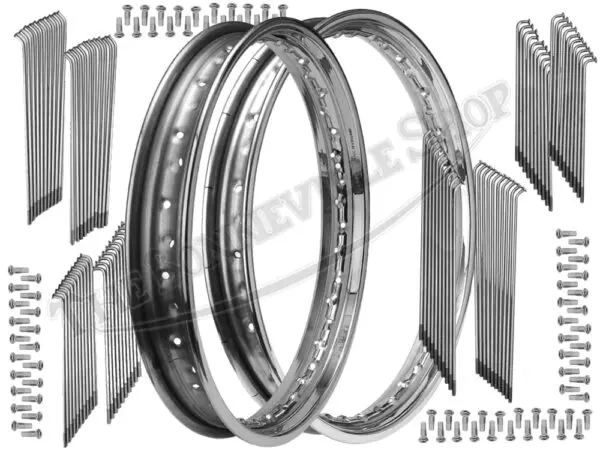 Devon Valtru rims are the benchmark in classic motorcycle wheel components—precision drilled, true to original factory profiles, and hand-finished for outstanding quality. This complete kit provides everything needed to restore both front and rear wheels with authentic style and modern reliability.