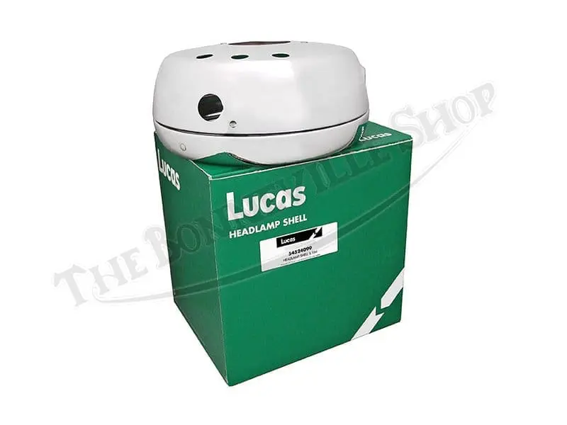Lucas 7-inch Flatback Headlight Shell Rim 54524099 and rim with correct lighting switch hole and 3 warning light holes as used on 1971-1972 Triumph and BSA 650 twins and triples.