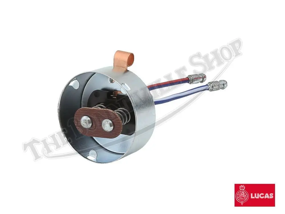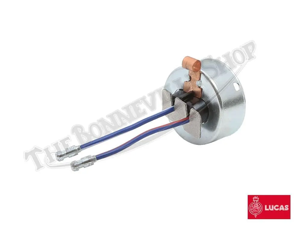 This new production genuine Lucas bulb holder is a faithful reproduction of the original design. The high beam and low beam wires feature correctly-colored sheathing and are fitted with Lucas bullet connectors.