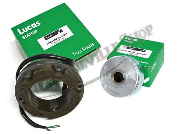 Is your charging system leaving you with a dead battery…or worse, stranded on the side of the road? Replace that 40 year old alternator with this new production Lucas kit! Includes current production rotor and 10 amp single phase stator as originally fitted to Triumph, BSA, Norton and other 12v motorcycles of the 1960’s & 70’s including Royal Enfield singles and twins. Likewise, upgrade your 6v charging system with this kit for added performance. Includes 47205 10A stator and 54202299 rotor.
