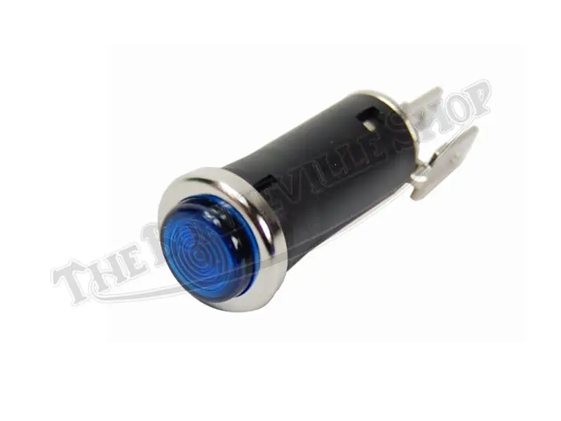 Lucas brand round blue warning light as used on Triumph and Norton motorcycles in the 1970’s. Comes complete with bulb socket, bulb not included.