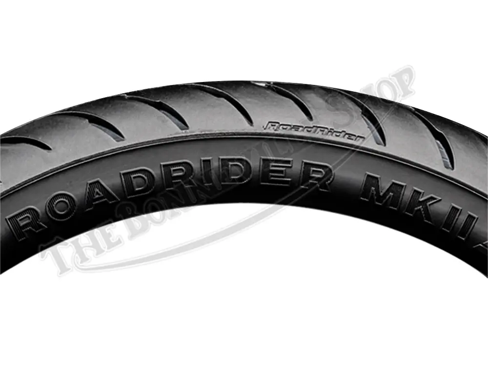 Designed for motorcycles of all ages, the Avon Roadrider MKII provides a step forward in performance and reliability over its predecessor, the MK I. Featuring a high-silica compound for excellent wet or dry performance, the symmetrical tread design allows for use as a front or rear tire. The enhanced sidewall design reduces the effects of ozone degradation.