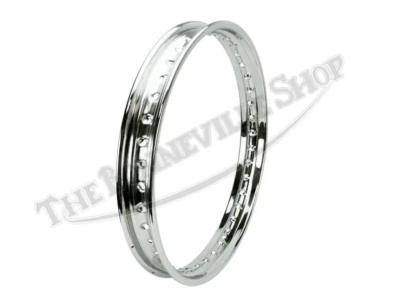 UK Made Dunlop style British Chrome WM2 x 19″ 40 spoke front & rear wheel rim for Norton, Matchless & AJS drum brake models. Properly drilled for early Norton full width drum hub front & rear wheels up to 1974. These are the highest quality true British Chrome rims made in the UK by CWC (Central Wheel Components)