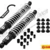 Once the correct length bushing sleeves are selected and fitted to the eyelets of the shocks, stock pivot bolts are fitted through the sleeves and mounting cradles on the frame and swinging arm.