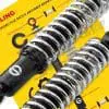Girling has long been associated with outstanding rear suspension units and was the original equipment supplier of shocks to the majority of the British motorcycle manufacturers dating back to the 1950s. Their latest generation of shocks feature new innovations, such as a unique dual locknut system that allows for easy disassembly and spring pre-load adjustment. An assortment of various sized bushing sleeves also allows fitment of one specification to various models.