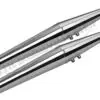 The muffler inlets are fitted over the 1-3/8″ ends of the exhaust header pipes and secured with clamps. The silencers feature integrated mounting bosses for direct mounting to the individual left and right hangers. It is advisable to loosen the exhaust system while fitting the silencers to allow for adjustments prior to tightening down the hardware.
