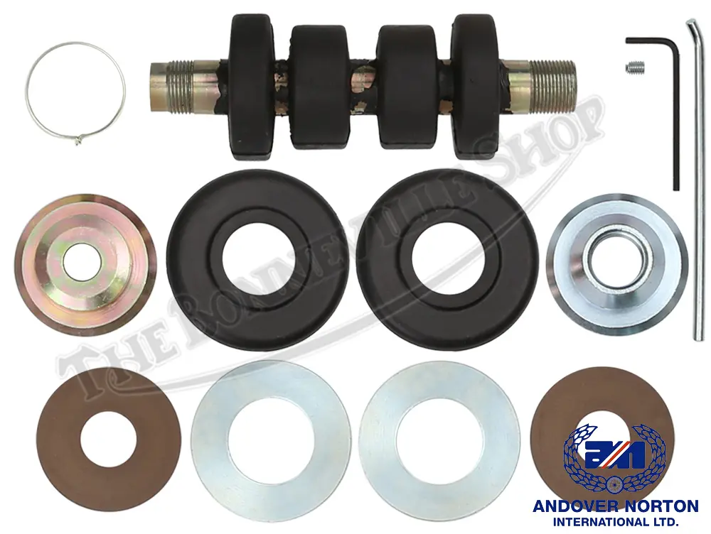 This genuine Andover replacement front Isolastic kit is designed for direct fitment to the 1975 Commando 850 models with the longer center tube. The kit is supplied with all of the necessary parts to renew the front engine mounting assembly, including the collar adjusting tool. Not recommended for fitment to the earlier MK1 or MK2 models. Made in the UK.