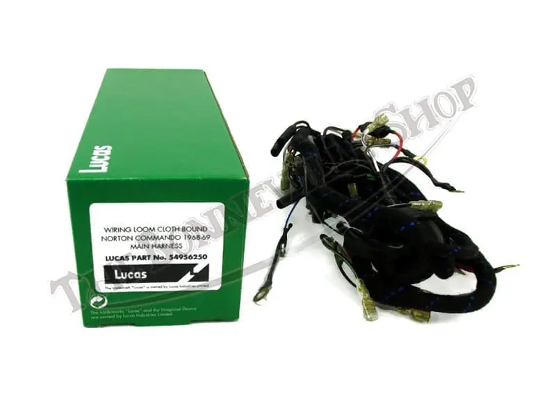 Genuine Lucas brand, U.K made, cloth bound main wiring harness. This wiring harness fits 1968-1970 Norton Commando twins with distributor ignition.