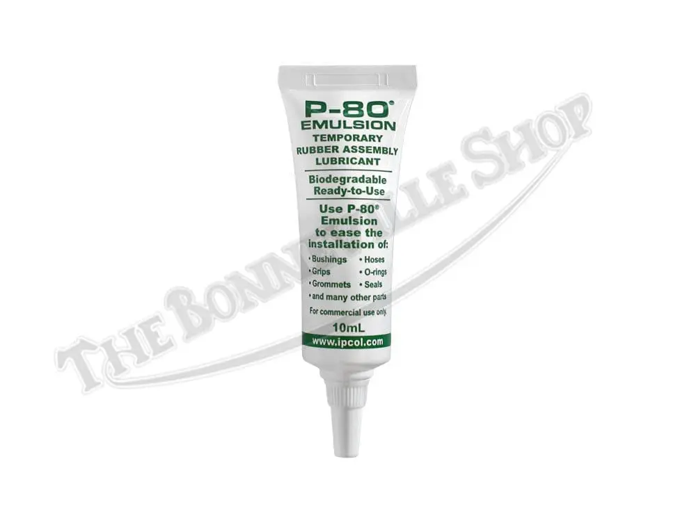 P-80 Emulsion rubber lubricant is an essential product for anyone servicing and rebuilding vintage motorcycles. Used in many applications, this emulsion fluid eases the installation of engine and gearbox oil seals, as it provides a high degree of lubricity when wet, but once dry, the slipping action diminishes.