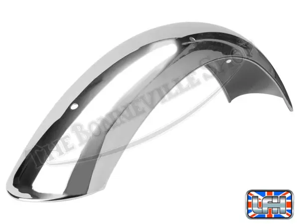 With an overall tip-to-tip length of just over 23″ this fender is shorter than a traditional front mudguard and is installed without fender stays. Featuring a pressed nose and chrome plated finish, this guard is pre-drilled to fit the original mounting bridge. Manufactured to original equipment specifications in the UK by LF Harris.