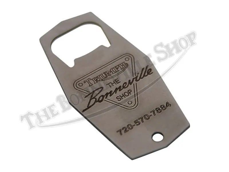 Kick back after a long ride by popping open your favorite beverage with our shop bottle opener! Locally made in Colorado, high quality laser engraved stainless steel bottle opener which doubles as a key chain.