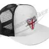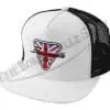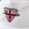Support your favorite Brit bike supplier in style with our embroidered trucker cap! 3 color. The crisp patent plate logo is finished in the Union Jack colors over the white front panel.
