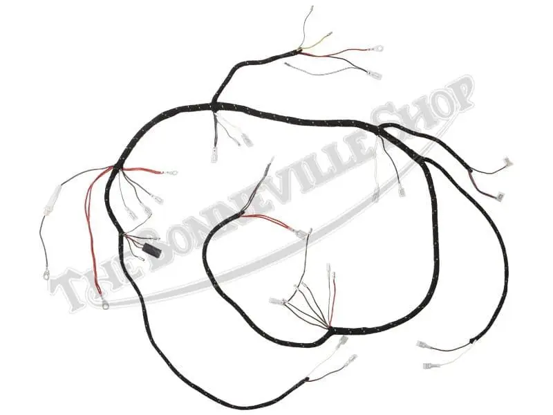 Main wiring harness for 1968-1970 Triumph TR25W models. Can also be adapted for use on BSA B25 and B44 models. The correct wiring harness is important for accurate circuit connections, eliminating the need for splices and jumper wires, etc. This wiring harness is appropriate for 1968-1970 Triumph TR25W motorbikes.