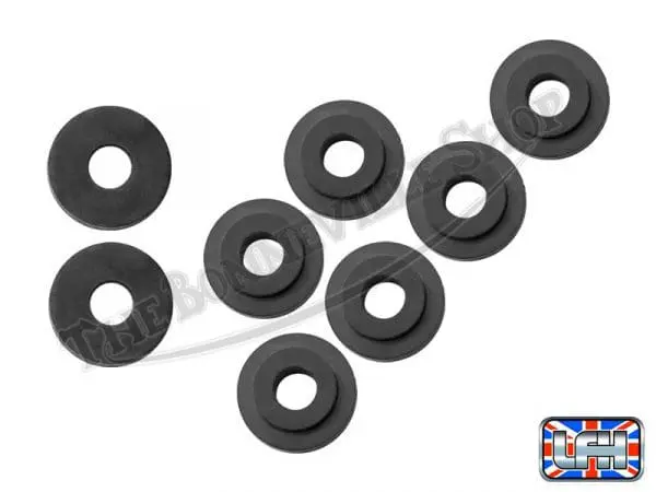 Set of 8 upper battery box strap rubber grommets for Triumph twins. Select 1 single set or a pair (2) of sets. Â