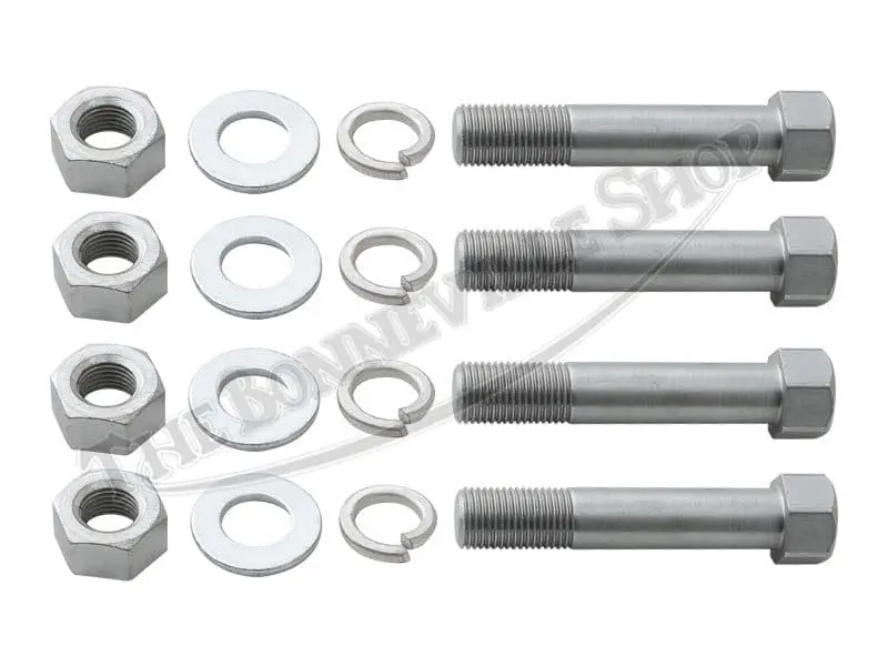 The kit includes the original style small hex head bolts, spring washers, flat washers, and correct bar-cut 3/8-26 TPI CEI nuts. Made in the UK.
