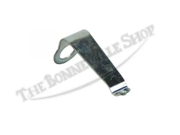 New production plated rocker box inspection cap retaining clip for all Triumph 350 and 500 unit twins 1964-73 including T90, T100, T100R, T100C, Daytona, Tiger, Trophy, etc. While not originally used on 1961-63 & 1974 500 twins, these can also be retro fitted as a security upgrade to keep your caps where they belong. Sold individually or replace several.