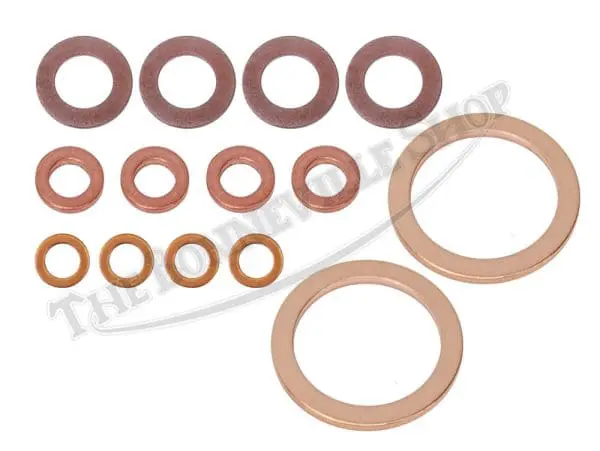 This copper washer assortment contains the most common sealing washers used as drain plug, rocker spindle shaft, and sump plug washers on the unit-construction Triumph twins. Consult your parts book for specific applications. Stock up now and ensure you have the correct new sealing washers on hand when servicing your engine.