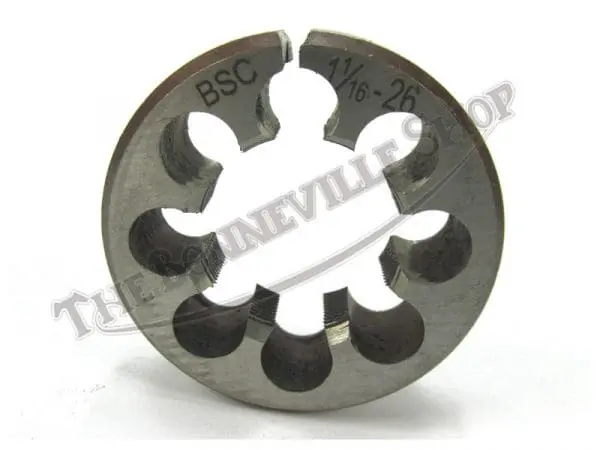 A must have for both shops and hobbyists alike. We recently sourced a handful of these from a dealer in the U.K. 1 1/16″ x 26 TPI Whitworth die for chasing threads on early Triumph fork top nut threads up to 1967. H1658 or 97-1658 etc.