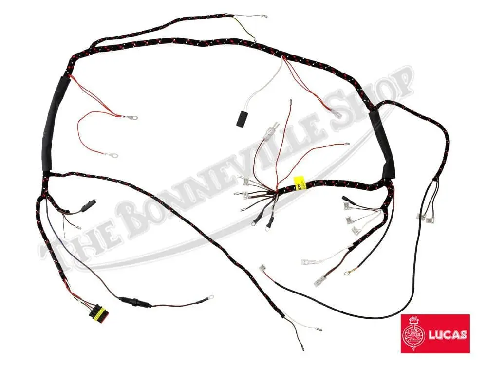 Manufactured in the UK, the wiring loom is constructed with original style insulated terminals and bullet connectors terminating in the correct locations for the retained original electrical components, but with an electronic ignition feed in the branch to the ignition switch and the earth connections terminating the loom at the original coil location. Supplied with a plug-in multi-connector for fitment directly to the Lucas-branded regulator/rectifiers, which can be easily removed and replaced with bullet connectors or spade terminals for use with other makes of charging modules.