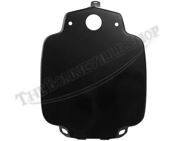 The mounting bracket is fitted to the rear fender to display the license plate and tail lamp assembly. There is a slight cutaway at the lower fixing points to clear the rib that is present on some rear mudguards fitted to pre-unit Triumph models.