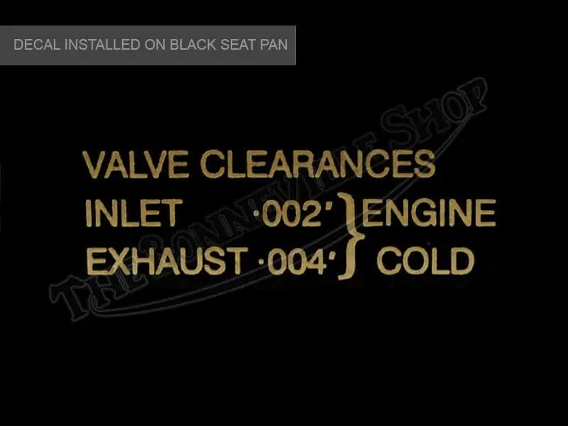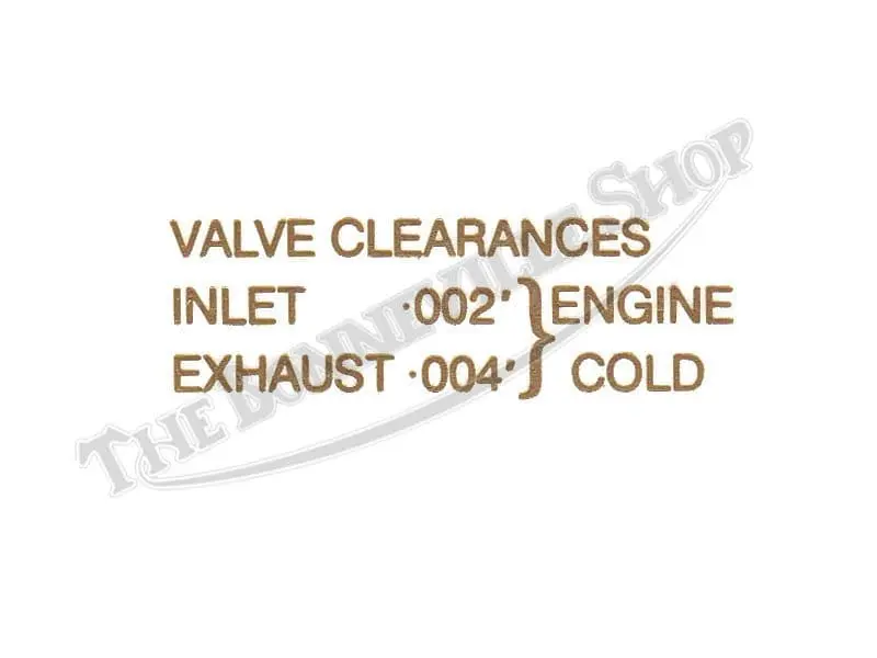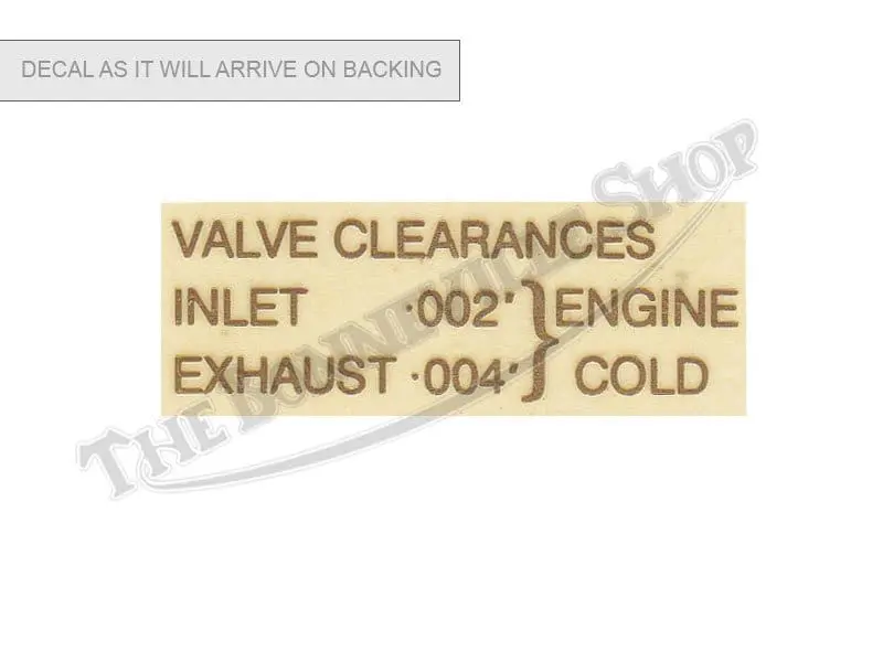 Lovely gold on clear valve clearance decal as affixed under the seat of Triumph 500 & 650 twins. Crisp printing, a must for your restoration!