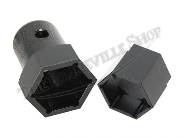 Combination gearbox spanner tool for both 4 & 5 speed transmissions. Replaces both Triumph factory service tools # 61-6061 & 61-6125. Will fit all pre-unit and unit 4 speed models up to 1972 with a 1 5/8″ nut and all Triumph 750 will fit all 5 speed models from 1972 on with a 1 7/8″ nut. Extremely heavy duty, this is the last Triumph 650 / 750 gearbox spanner you’ll ever need!