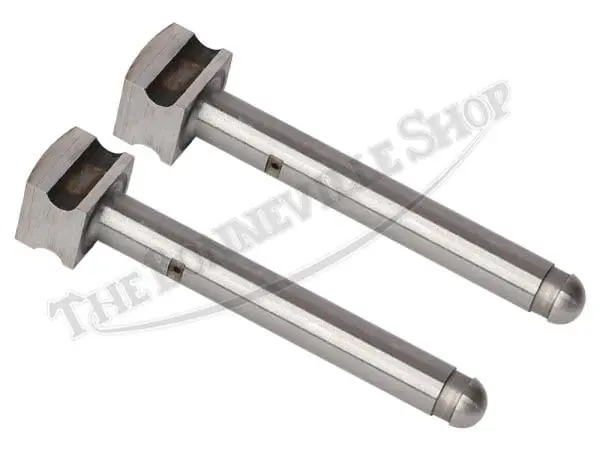 The 70-8801 exhaust cam followers feature a 1-1/8″ radiused head, also known as ‘R’ radius. Many aftermarket camshafts require the use of the flatter ‘R’ radius tappets. The Triumph factory ‘Q’ cams with the E3134 profile are generally specified for use with this cam follower profile, including the 70-9989 camshaft. When used in an early unit-construction engine prior to 1966, or a late-model 750 engine with non-pressure fed oil passages in the tappet guide blocks, the placement of the oiling holes on the stems of the tappets is inconsequential. Sourced from the UK by LF Harris.