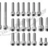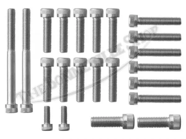 Triumph 650 twins stainless steel Allen screw engine cover kit. 1/4″ x 26 T.P.I. kit for primary, timing and gearbox and points cover too. Fits all 650cc Bonneville, Tiger and Trophy models from 1963 to 1968, includes Allen wrenches.