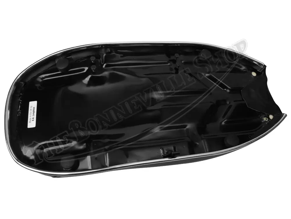 Premium hand-crafted seat made in the UK from RK Leighton. The dual seat is a prominent part of the restored motorcycle, and the seat should be finished in the correct pattern and color. This faithful reproduction seat is specified for the US-market 1971-1972 Triumph 650 oil-in-frame models with the right-side hinges and “lunchbox” type latch.