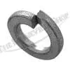 Split washer retains tension on the bolt, thus obviating loosening in service.