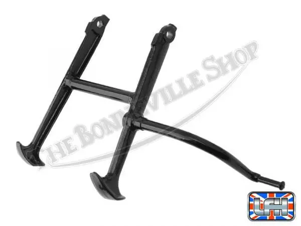 Top quality made in England main stand / center stand for 1964 to 1968 Triumph T120 Bonneville and TR6 Tiger models. Powder coated gloss black, ready to go!