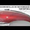 The chrome petrol tank center styling strip is correct for the 1969 and 1970 Triumph 650 models with 2.5 and 3.5 gallon tanks, as specified for the US market models. This styling strip is not compatible with the Emgo reproduction T120 petrol tanks, due to slight differences in dimensions.