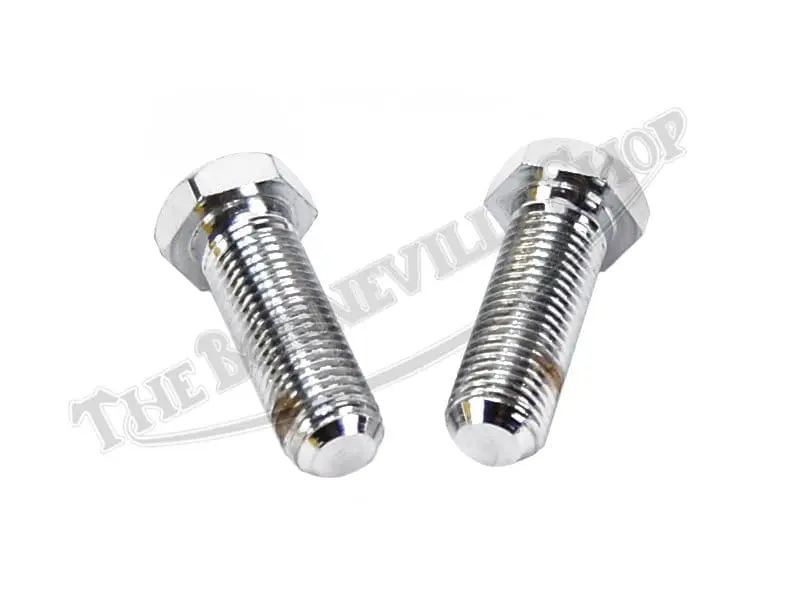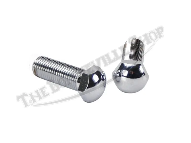 Lovely UK chrome headlight mounting bolts used on Triumph twins 1978 onward. Can also be used on 1971-1977 Triumphs when deleting or relocating the stock turn signals. 7/16″ x 20 TPI x 1-1/2″ long.