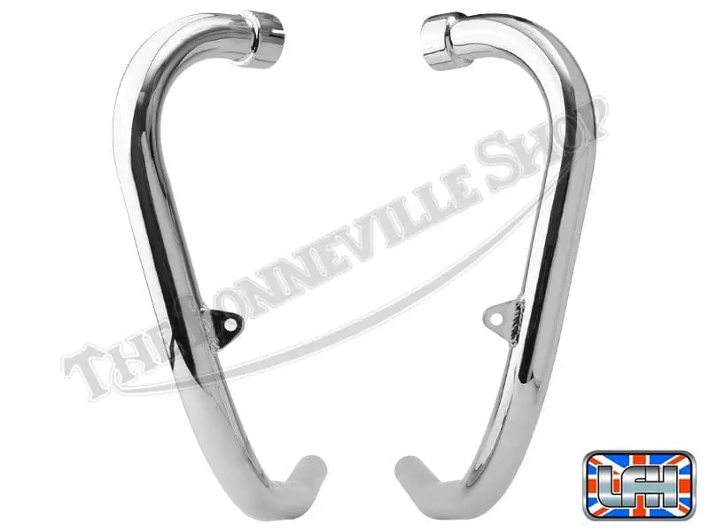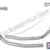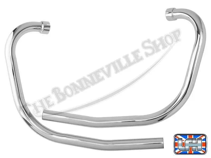 English made Triumph exhaust pipes/headers as fitted to 1973-82 T140 Bonneville and TR7 tiger models that have exhaust port stubs/spigots. These pipes are specifically designed with no balance pipe and 1 3/4″ inlet to fit T140/TR7 models. Manufactured by L.F. Harris in the U.K. these British chrome pipes are great for a restoration or just to add some mojo to your street bike.