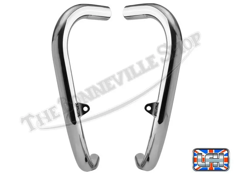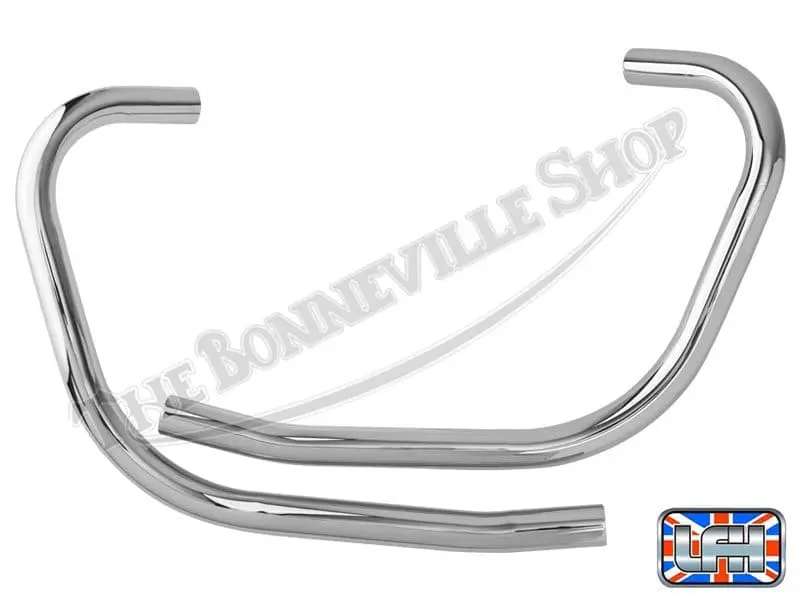 English made Triumph exhaust pipes / headers as fitted to 1973-82 T140 Bonneville and TR7 Tiger models with push in exhaust ports. These pipes are specifically designed with no balance pipe and 1 3/8″ outlet to fit T140 / TR7 models. Manufactured by L.F. Harris in the U.K. these British chrome pipes are great for a restoration or just to add some mojo to your street bike. See our other listings for the header pipe clamps and any other fittings you may need.