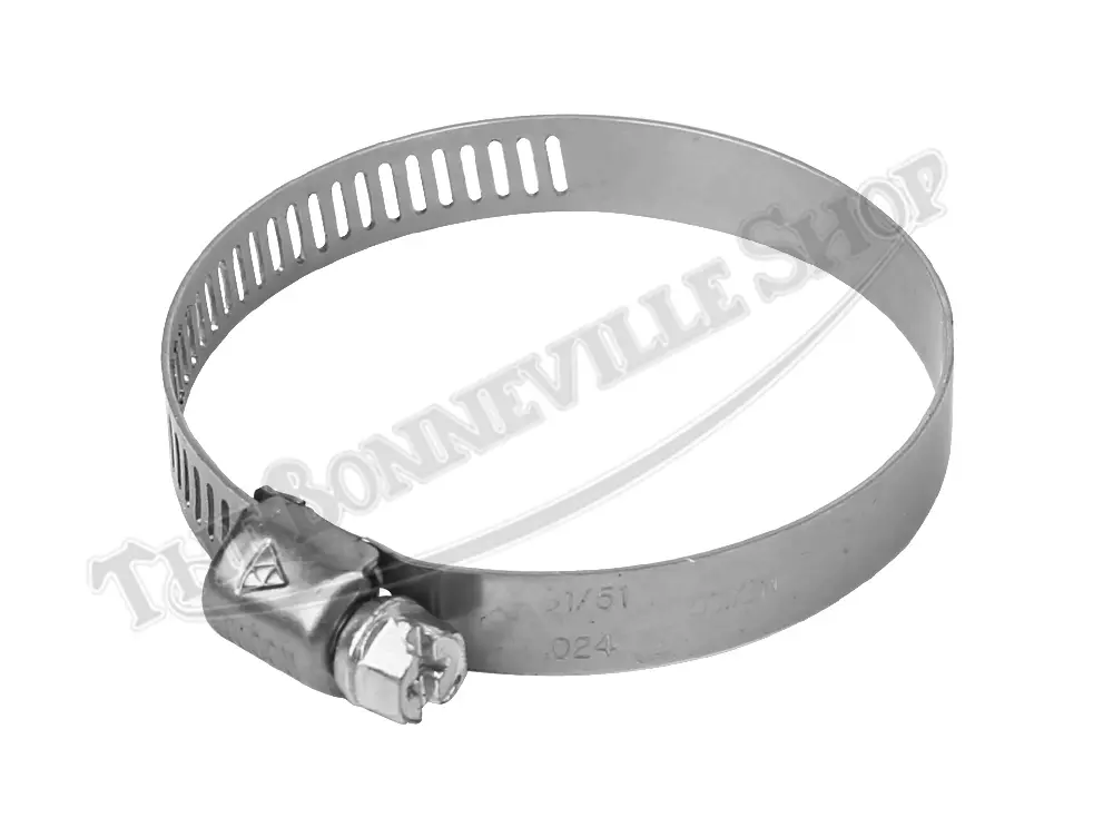 The clip provides secure retention and an airtight seal between the rubber connection hose and the carburetor inlet. This clip is also suitable for retaining the non-threaded air cleaner backing plate to the carburetor on the 1960s-era BSA and Triumph twin-cylinder models.