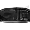Hinges are bolted to the bosses on the underside of the seat pan. It is recommended that the front hinge is loosely fitted first to the seat pan, then the rear hinge captured on the hooked mounting tab can be bolted to the seat pan. Once the correct alignment is established, the hinge bolts can be fully tightened, securing the seat to the rear frame section.