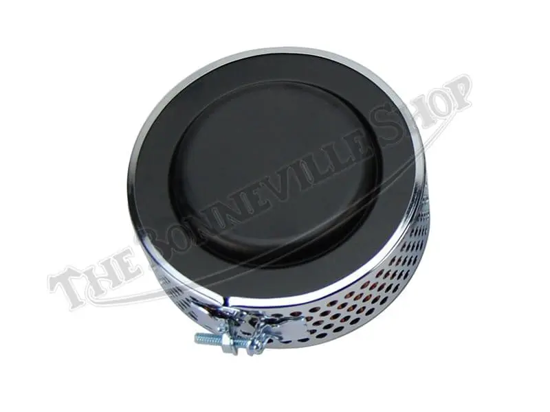 Excellent dished straight mount air cleaner for most Triumph & BSA twins fitted with 900 series Amal concentric carbs. Center mount, thread directly to 928 930 932 carbs.