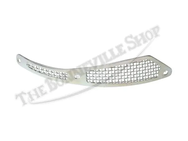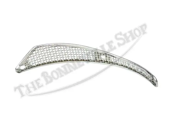 Sourced from the UK, the reproduction gauze screen and outer retainer are chrome-plated and designed to cover the air scoop on the 7″ TLS brake plate. Overall radius length is approximately 7-1/4″.