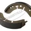These brake shoes feature bonded friction material and measure 7-1/8″ overall length, with a width of 1-1/2″.
