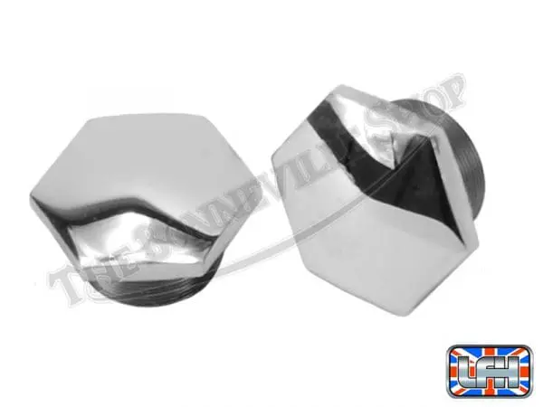 These 26 TPI chrome original specification fork top nuts are made in the UK by LF Harris and fit 1964-1967 Triumph 350, 500, and 650 models.
