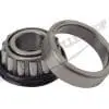 Timken-style tapered roller bearings consist of a two-piece cup and cone assembly. The outer ring is the cup, while the inner ring, rollers, and cage assembly comprises the cone. The parts of the bearing are detachable, and the cone is narrower on one end, and the races are built with one side narrower to match the rollers. Supplied with an integrated protective rubber dust seal.