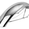 This is the updated short chrome front mudguard with the fixed wire stays, including the center vertical braces, as specified for the US-market 1972 Triumph TR6C, BSA A65, A70, and A75 models, and 1973 Triumph X75 models. Tip to tip measurement is approximately 22″. Genuine Speedwell manufactured in the UK.