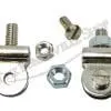Lovely plated front license plate “pedestrian slicer” clip set. ‘Pedestrian slicer’ is the nickname given to the front license plates England required on motorcycles. These clips will affix a pedestrian slicer to virtually any bike including Triumph Norton BSA Honda Yamaha Matchless AJS Vincent etc. To add that cool vintage vibe. Drilling of your front mudguard may be required.